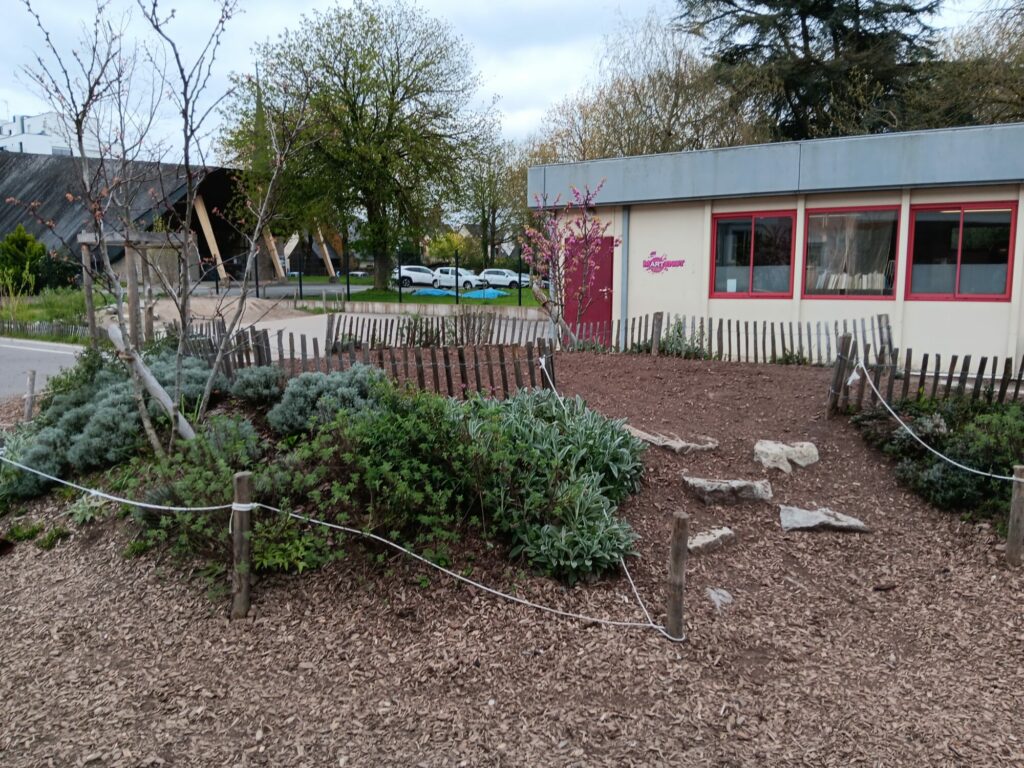 Nous étions accueillis à l’École Saint-Clément à Rennes, qui nous a d’ailleurs reçus autour d’un café convivial avant de nous présenter son projet d’aménagement. Cheffes d’établissement, membres d’OGEC et partenaires ont partagé les différentes étapes de leur démarche : analyse des besoins, choix d’aménagement, mise en œuvre… avec un point essentiel : la participation active des enfants à la réflexion. Un beau projet qui ravit aujourd’hui tous les usagers de la cour.
